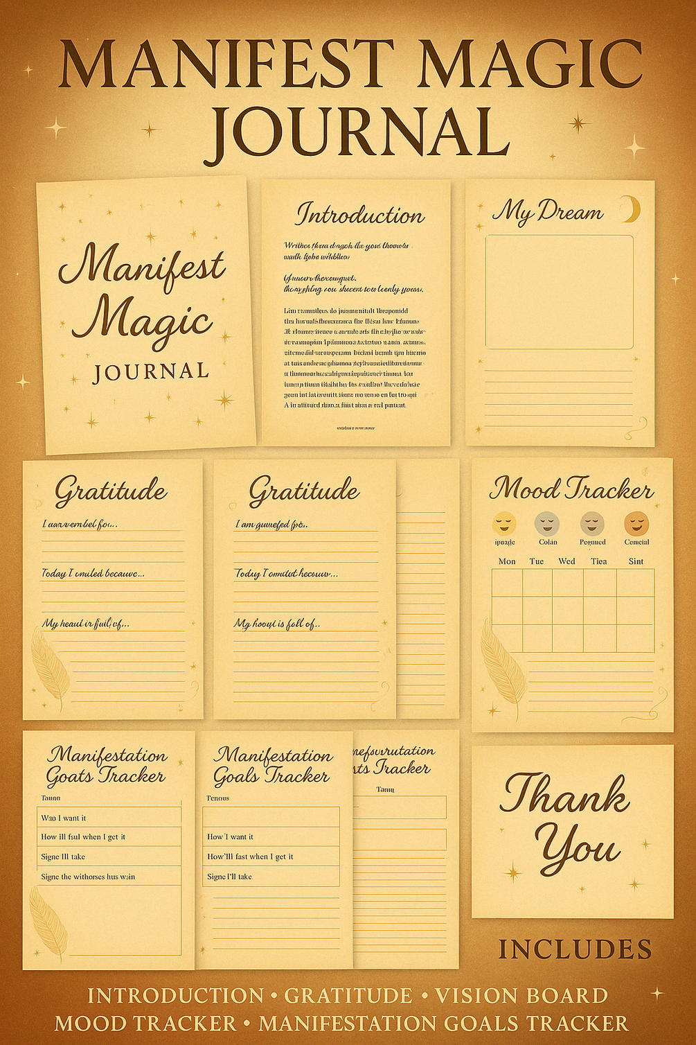 The Manifest Magic Journal is more than just a notebook — it's a sacred space for dreamers, believers, and soul-aligned creators to anchor their deepest desires and call them into reality.